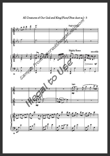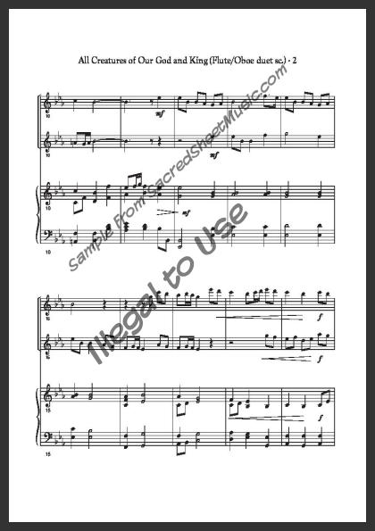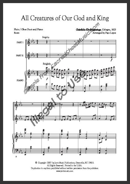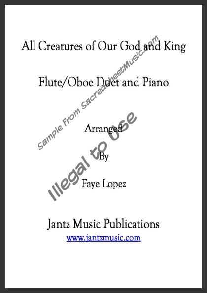 Includes the full score with piano accompaniment and separate duet parts for Flute I and Oboe II.
