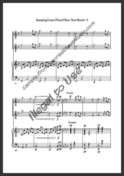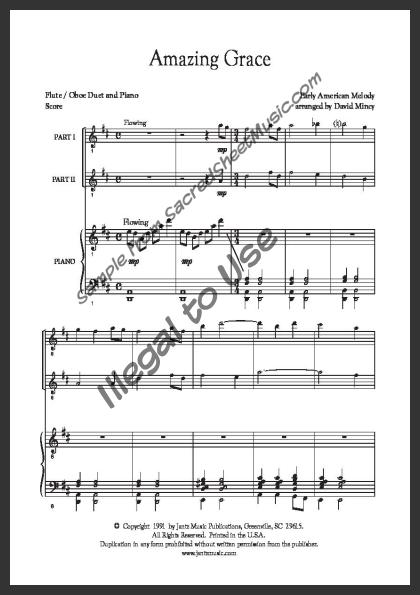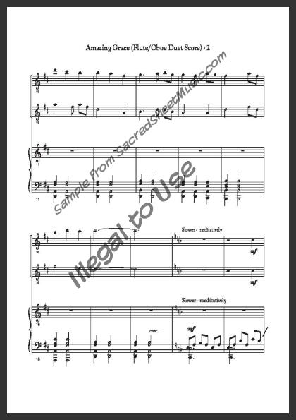 Mixed woodwind duet for Flute and Oboe with piano accompaniment. A simple, beautiful arrangement of one of our best-loved hymns. Moderately Easy level of difficulty.