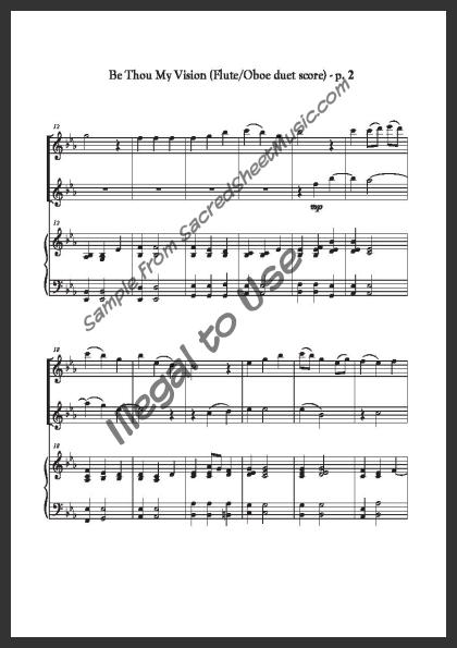 Includes the full score with piano accompaniment and separate duet parts for Flute I and Oboe II.