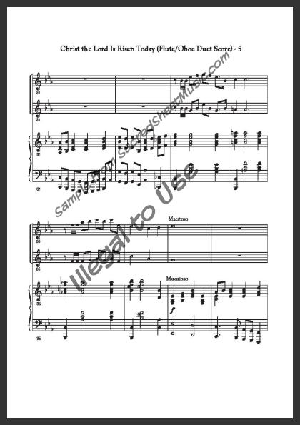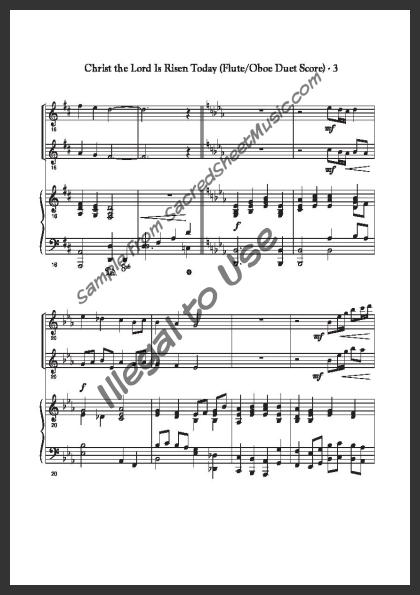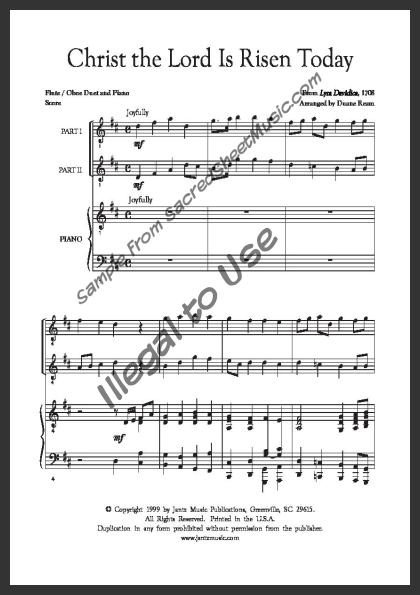 Mixed woodwind duet for Flute and Oboe with piano accompaniment. An energetic arrangement of this well-known Easter hymn by Charles Wesley. Moderately Advanced level of difficulty.