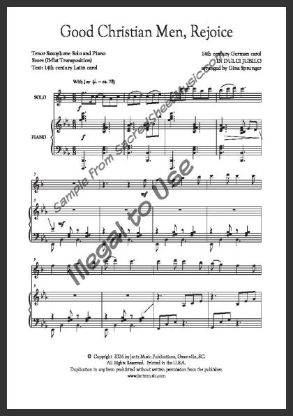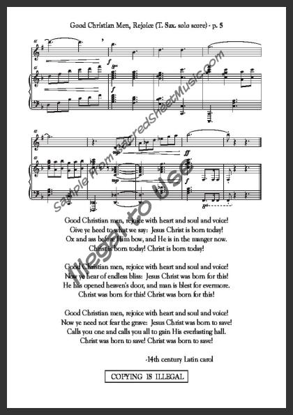 Tenor Saxophone solo with piano accompaniment. An uplifting arrangement of this popular Christmas carol declaring ‘Jesus Christ is born today!’ Moderate level of difficulty.