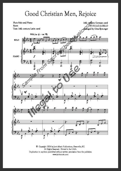 Flute solo with piano accompaniment. An uplifting arrangement of this popular Christmas carol declaring ‘Jesus Christ is born today!’ Moderate level of difficulty.