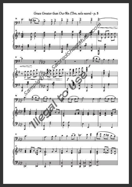 Trombone solo with piano accompaniment. A beautiful, flowing arrangement reminding us of the ‘marvelous grace of our loving Lord.’ Moderate level of difficulty.