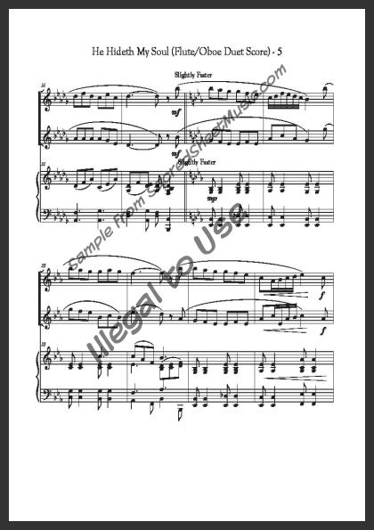 Includes the full score with piano accompaniment and separate duet parts for Flute I and Oboe II.