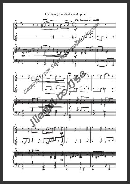 Clarinet duet with piano accompaniment A bright, uplifting arrangement that celebrates Christ’s resurrection – ‘I serve a risen Savior.’. Moderately Advanced level of difficulty.