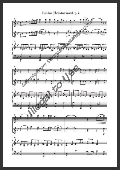 Includes the full score with piano accompaniment and separate duet parts for Flute I and II.