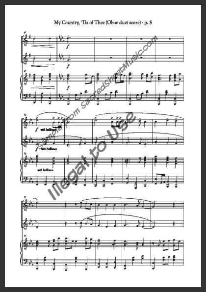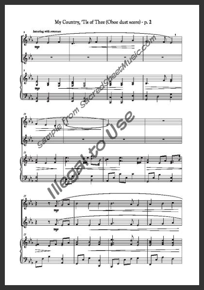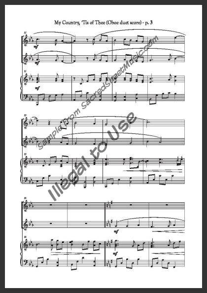 Oboe duet with piano accompaniment. A powerful, fresh setting of this popular American patriotic song – “America.”. Moderately level of difficulty.