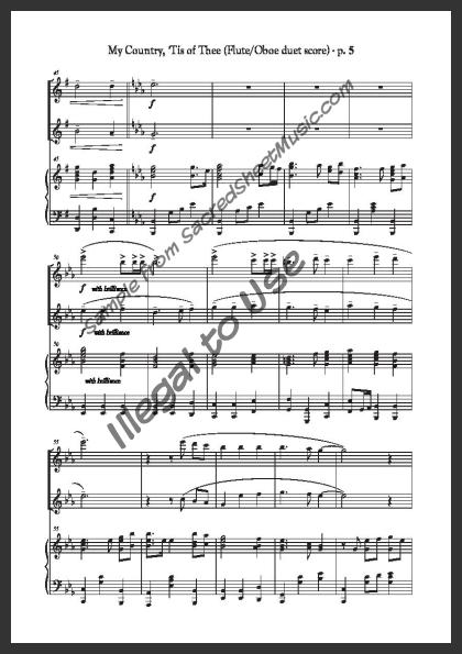 Mixed woodwind duet for Flute and Oboe with piano accompaniment. A powerful, fresh setting of this popular American patriotic song – “America.”. Moderately level of difficulty.