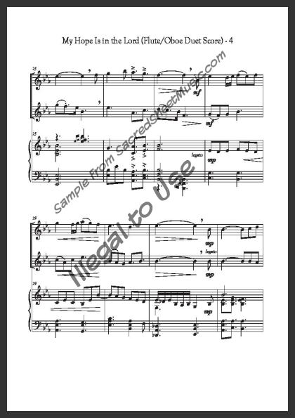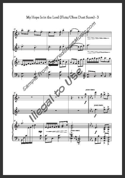 Includes the full score with piano accompaniment and separate duet parts for Flute I and Oboe II.