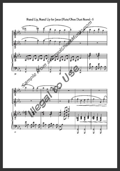 Mixed woodwind duet for Flute and Oboe with piano accompaniment. A rousing duet using both the Webb and Geibel hymn tunes. Moderate level of difficulty.