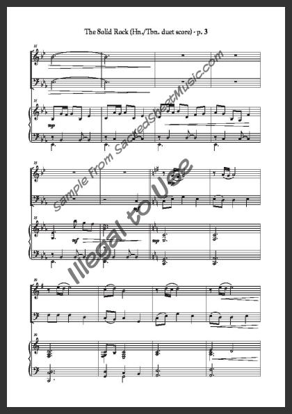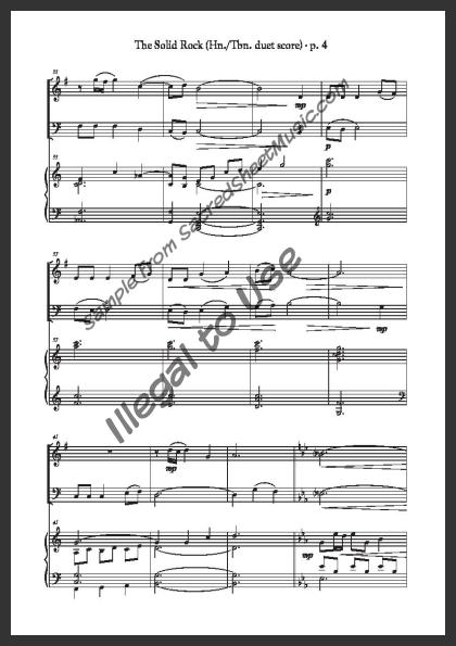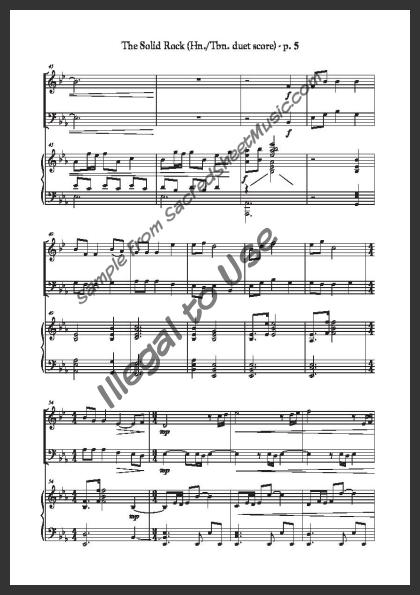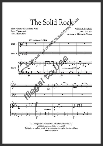 Mixed brass duet with piano accompaniment for horn and trombone. A bright, uplifting arrangement that reminds us our hope is built on Christ. Moderate level of difficulty.