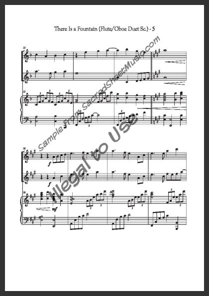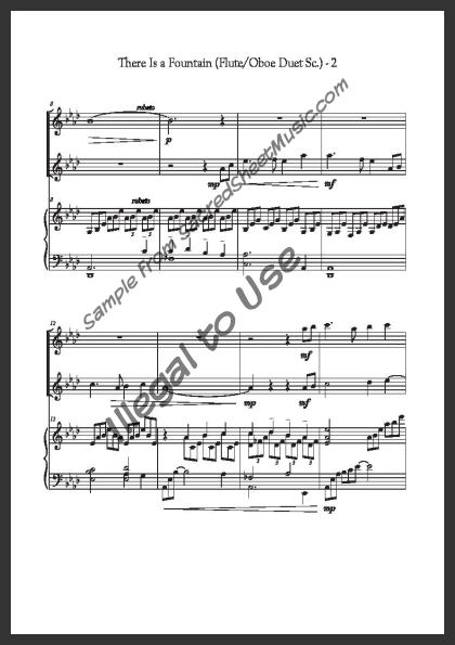Includes the full score with piano accompaniment and separate duet parts for Flute I and Oboe II.